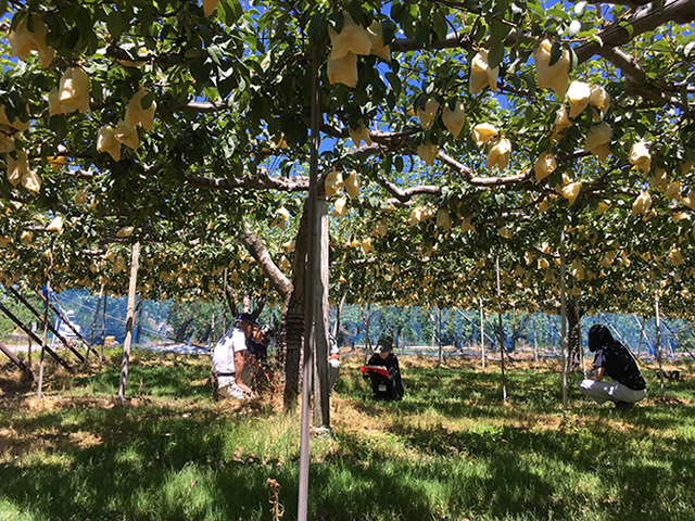 南区における主要果樹(桃・日本梨・西洋梨・ぶどう)の生育調査を実施し、生育状況及び病害虫の発生動向を把握することにより、適切な栽培管理と適期防除をすすめることで、高品質で高食味な果物生産をおこないます。